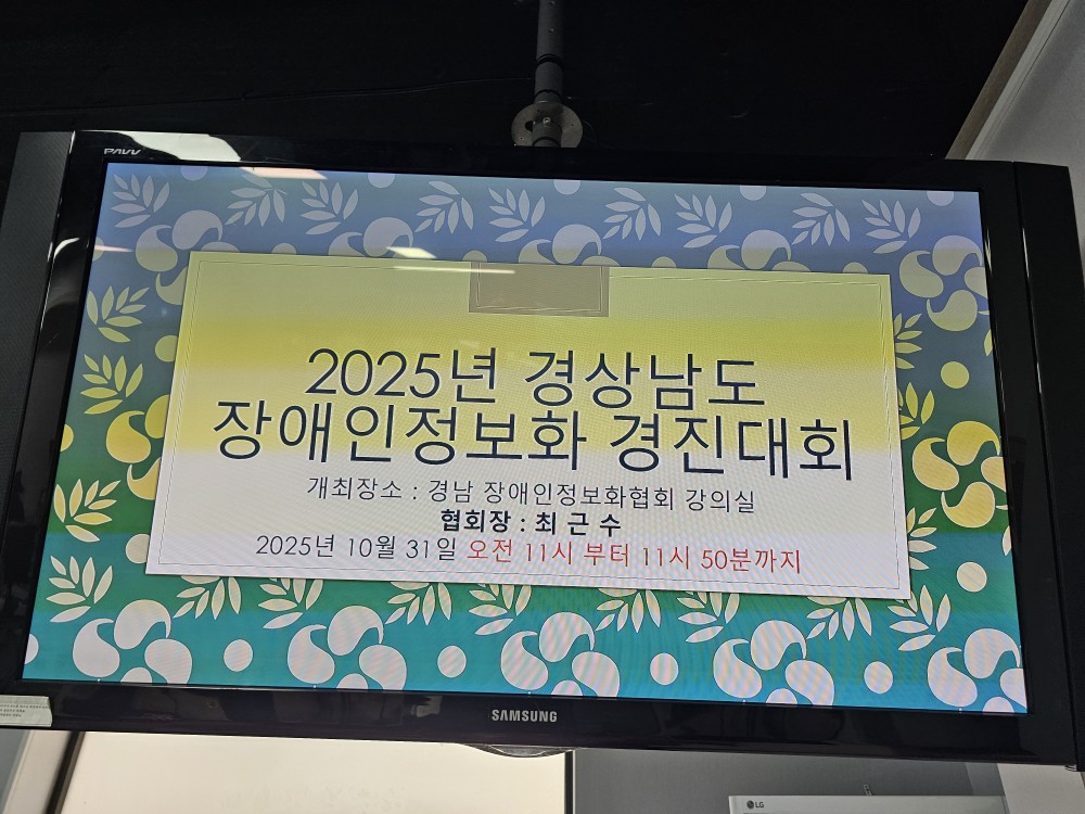 2025년 경남 장애인정보화 경진대회 개최 관리자 0 84 2025.10.31 14:34 2025년 장애인 정보화 경진대회가 대면 및 비대면으로 진행됨 그동안 열심히 준비하여 실력을 마음껏 발휘한 모든 참가자에게 감사드립니다. 결과에 만족할 수 있도록 매번 열심히 연습한 여러분께 큰 박수를 보내드립니다.내년에도 더 좋은 모습으로 대회에서 만나길 기대합니다.입상자는 개별통지하겠습니다.시상식은 11월 14일 11시 경남 장애인정보화협회에서 실시합니다.모두 수고 많으셨습니다.