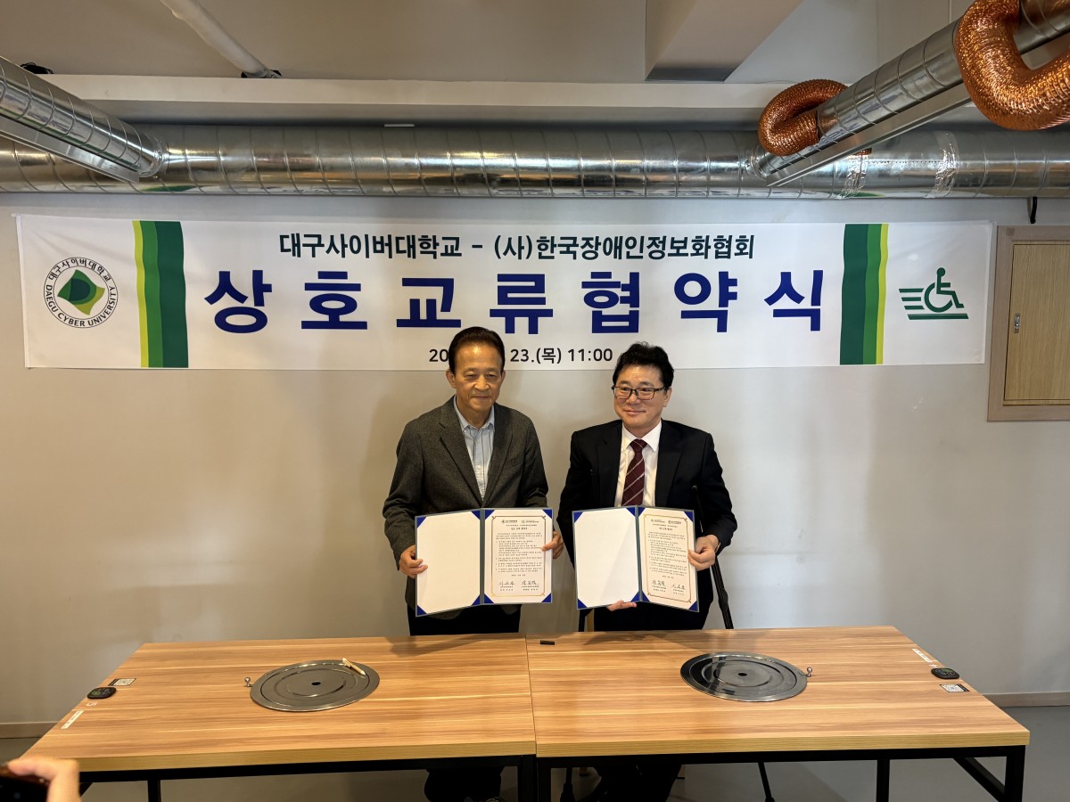 대구사이버대학교는 (사)한국장애인정보화협회와 상호 교류 협약을 맺고, 장애인의 정보화 시대 대비와 평생학습 기회 확대를 위해 협력합니다.